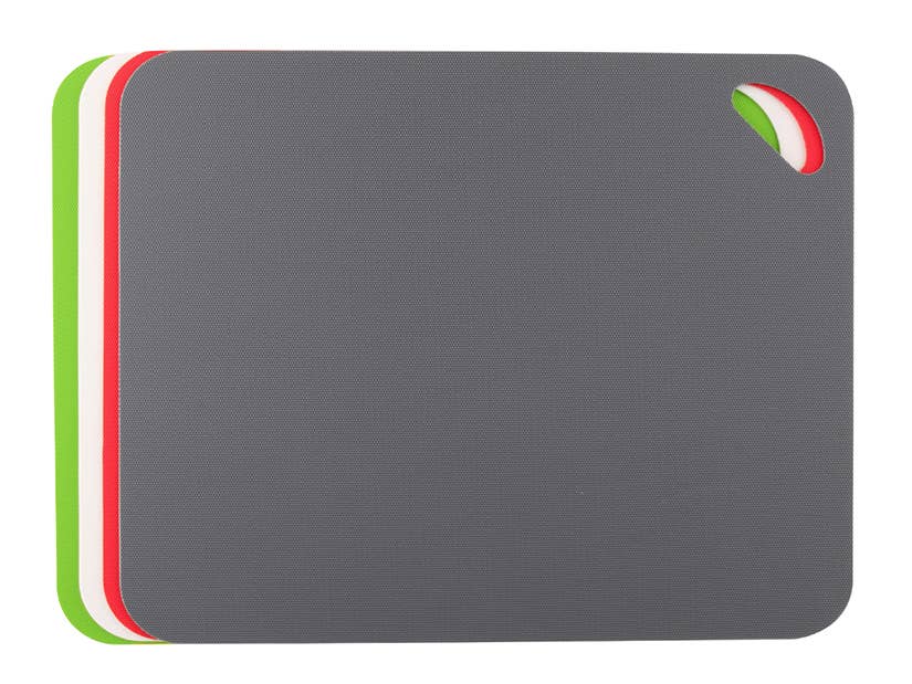 Heavy Duty Grippmat Cutting Mats by Dexas are durable, lightweight, non-slip and flexible. These cutting mats are non-porous and non-absorbent and will not dull knives. The underside of each mat features a non-slip backing to grip tightly to counter surfaces for safety. These flexible cutting mats roll to funnel prepped foods into pans and bowls.