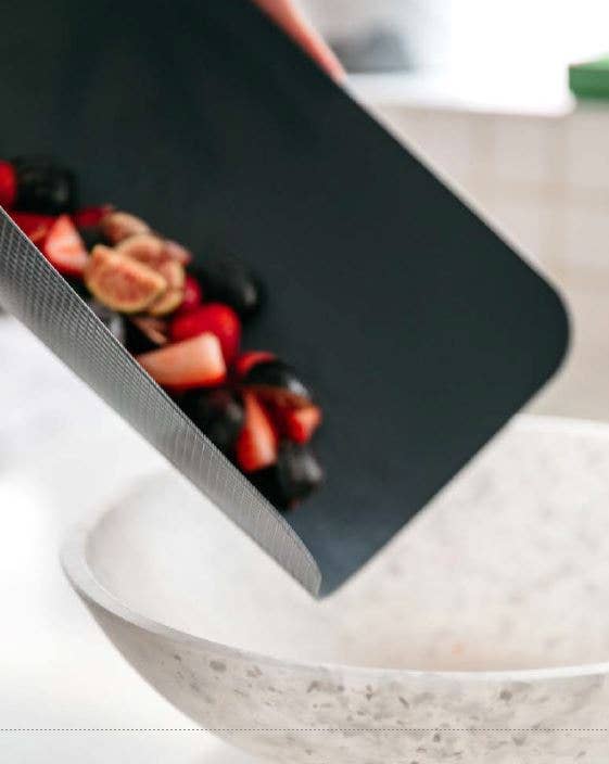 Heavy Duty Grippmat Cutting Mats by Dexas are durable, lightweight, non-slip and flexible. These cutting mats are non-porous and non-absorbent and will not dull knives. The underside of each mat features a non-slip backing to grip tightly to counter surfaces for safety. These flexible cutting mats roll to funnel prepped foods into pans and bowls.