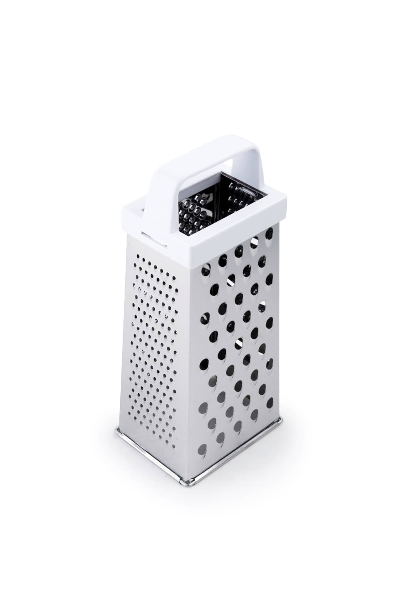 Grate easier! This wonderful 9-inch 4 sided Grater from Fox Run is a must-have for every kitchen. Made of quality stainless steel, the grater is perfect for grating spices, garlic, ginger, nutmeg, chocolate, cinnamon, blocks of cheese, vegetables, and more! The tool features a comfortable, easy-grip plastic handle to take the pain out of the grating process. Dishwasher safe for easy clean-up. The grater's 4 sides offer a variety of different grating sizes and options for whatever job, big or small.