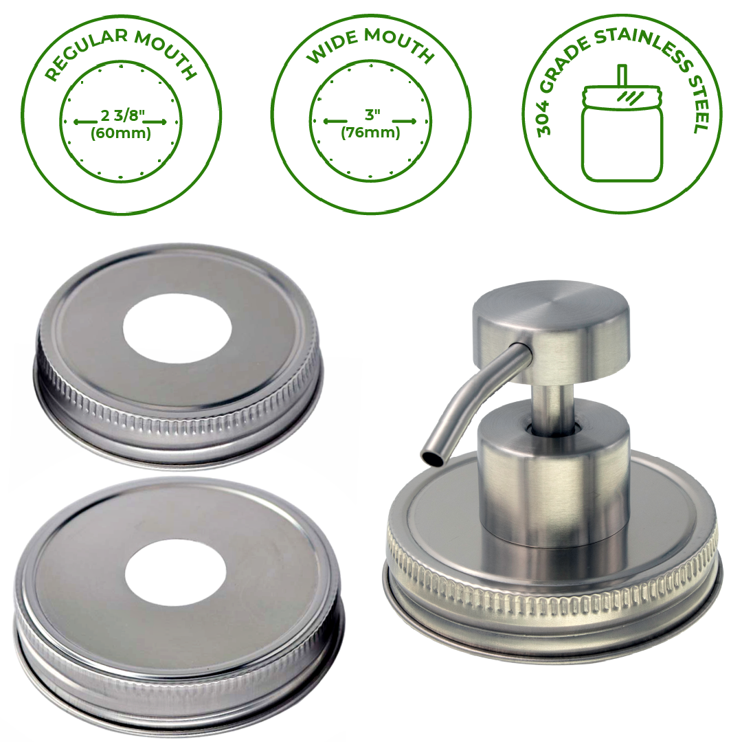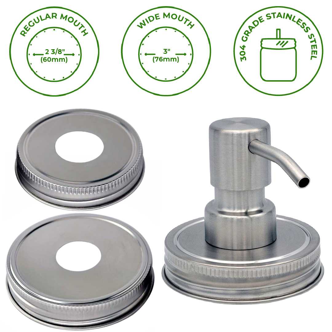 Mason Jar Lifestyle - Satin / Brushed Finish Soap Pump Dispensers for Mason Jars: Threaded galvanized / Regular mouth / #2