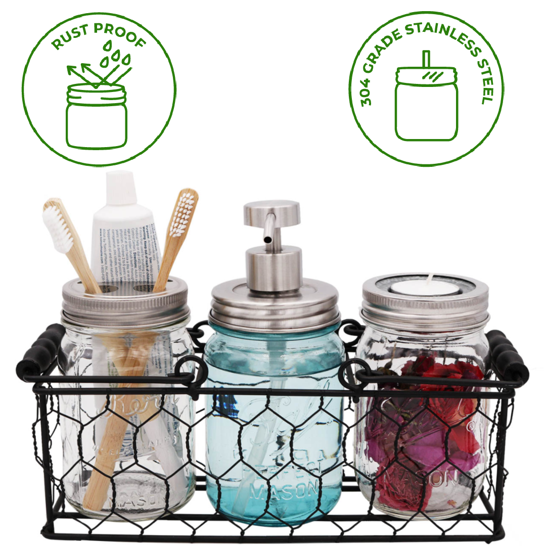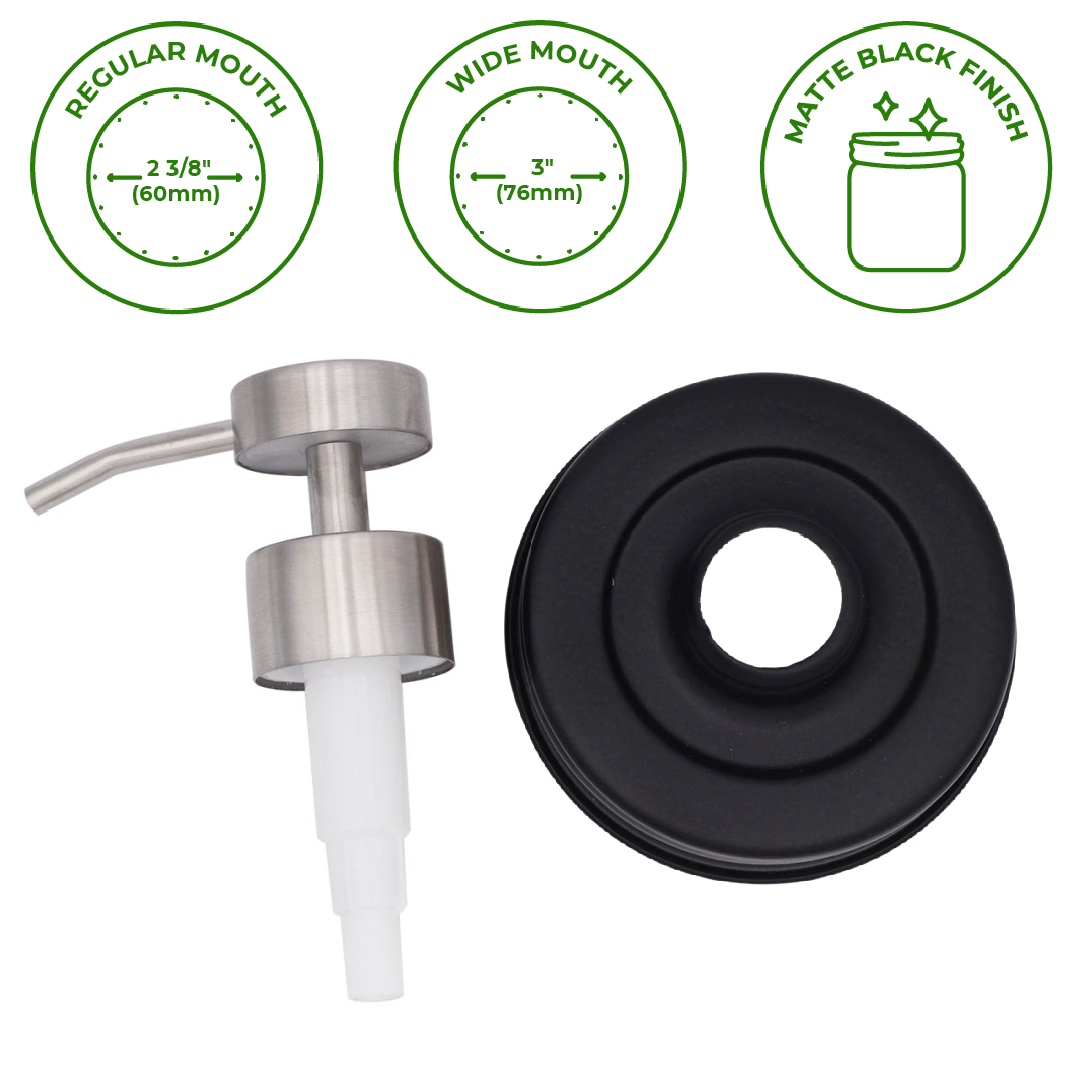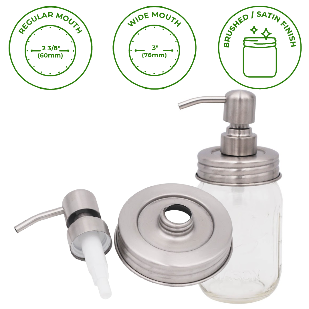Mason Jar Lifestyle - Satin / Brushed Finish Soap Pump Dispensers for Mason Jars: Threaded galvanized / Wide mouth / #2