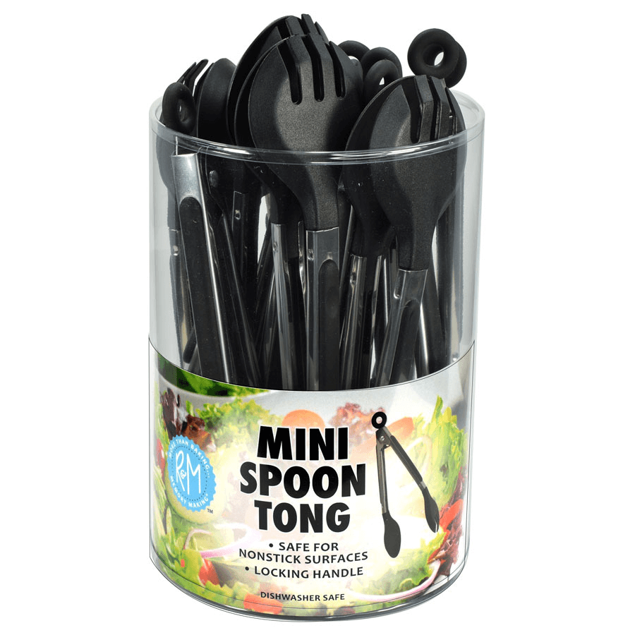 Our Mini Spoon Tongs are perfect for all your serving needs! Perfect for serving salads, sliced meat and more! Locking handle included for easy storage. Safe for nonstick surfaces. 8″ in length. Dishwasher safe.