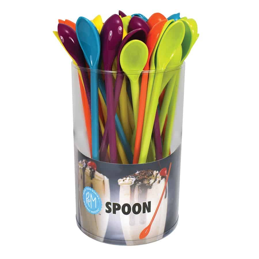 Great for coffee, cocktails and frozen drinks, this long spoon stirrer is sure to come in handy. 8.875" L. Plastic. Assorted colors. Hand wash.