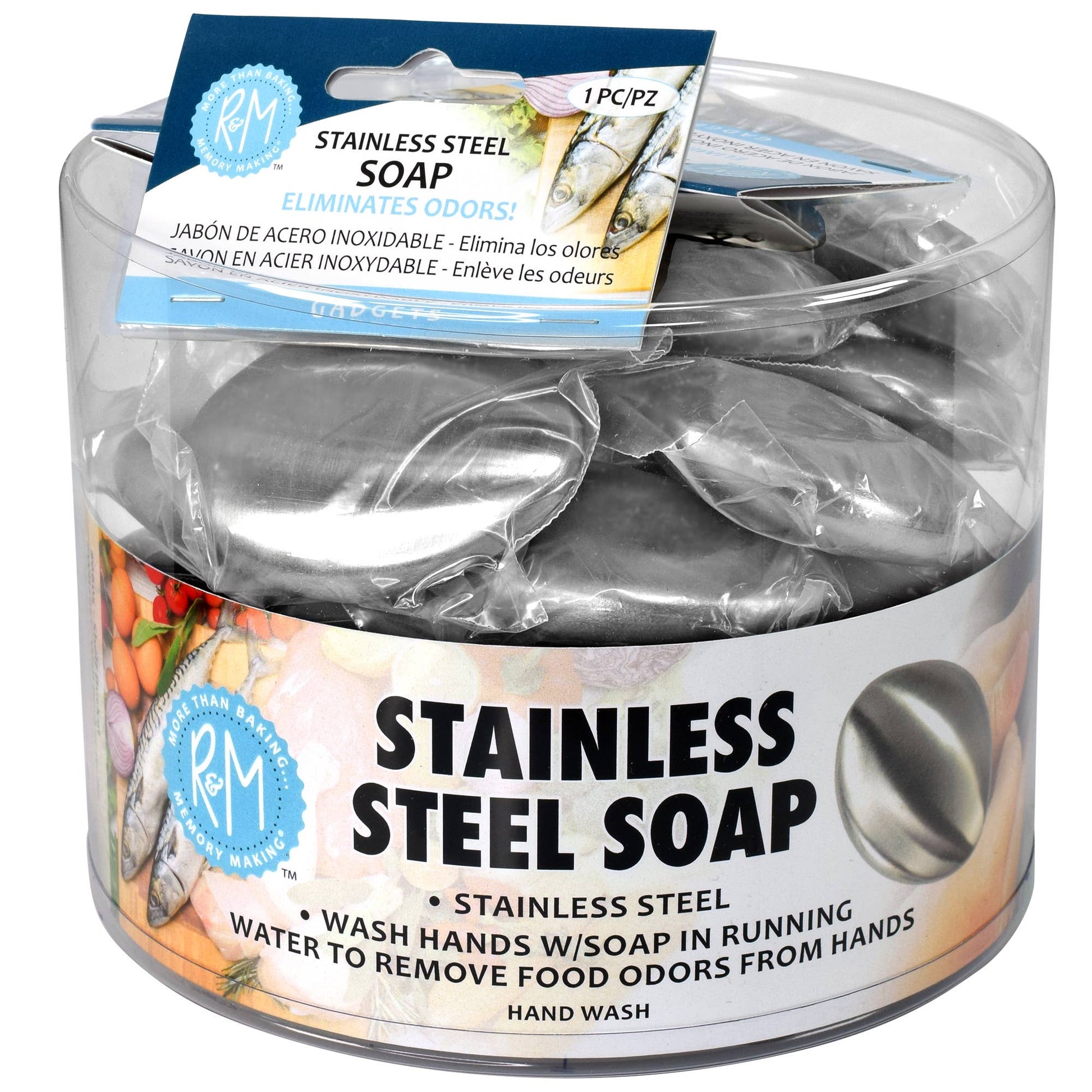 Say goodbye to stubborn kitchen odors with our innovative stainless steel soap. Perfect for removing strong smells like garlic, onions, and fish from your hands, this stainless steel bar works like magic – all without the need for harsh chemicals. Simply rub it between your hands under running water, and watch unpleasant odors disappear! Durable, reusable, and eco-friendly, this soap is a must-have for any kitchen. 2.5" x 1.75" x .625". Hand wash.