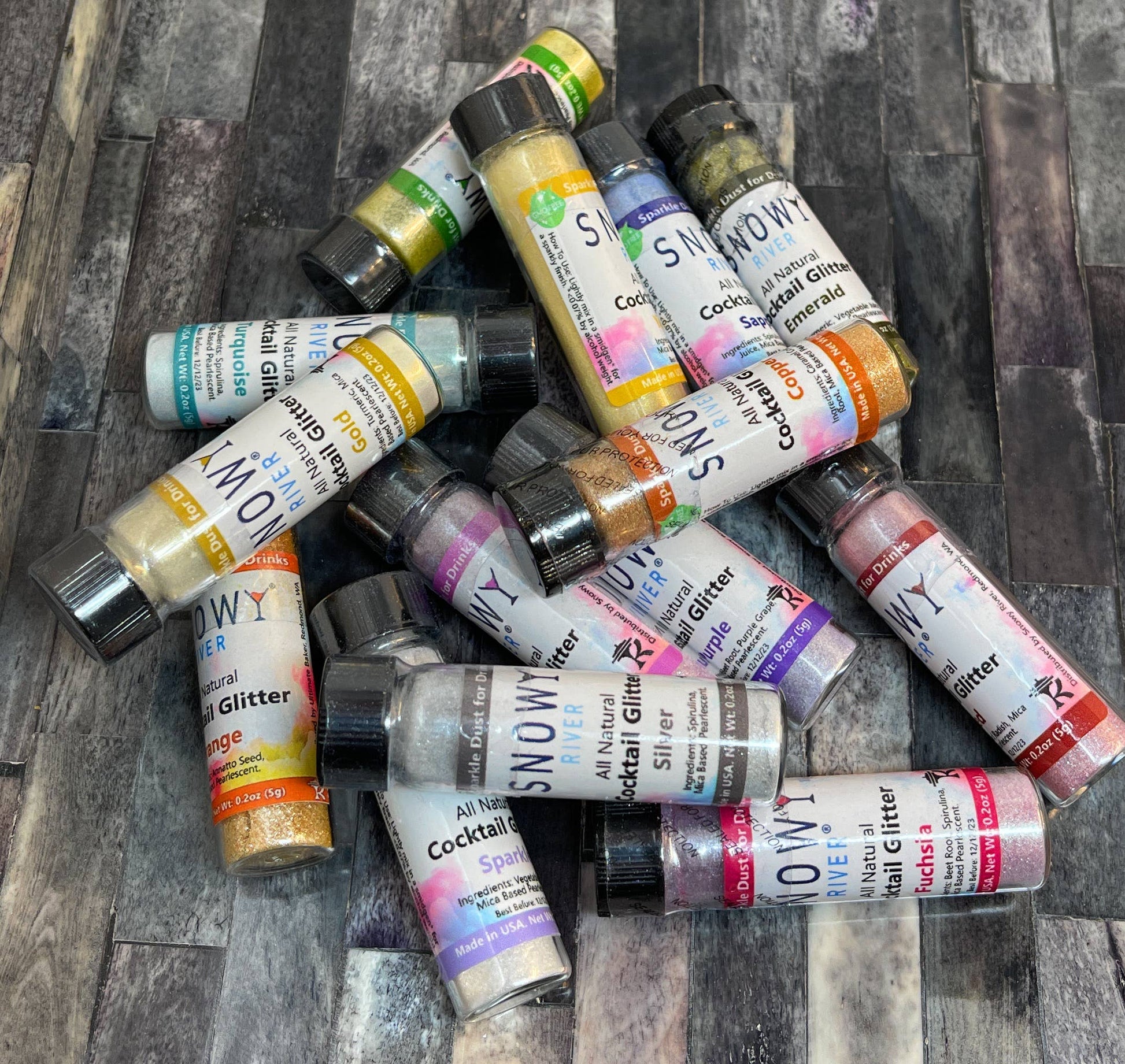 Snowy River All Natural Cocktail Glitter Snowy River cocktail glitter brings an amazing sparkle and shine to your cocktails! Colored with all natural fruit and veg, our cocktail glitters and are designed to be very lightly dusted on to the top of cocktails or stir in a smidgen to add amazing color and sparkle. Importantly, Snowy River cocktail glitters contain no preservatives, are fully water soluble, and look amazing in vodka, tequila and other clear based cocktails. To make your cocktails look truly amazing, rim the edge of the cocktail glass with Snowy River natural cocktail sugar and then add cocktail glitter or even a Snowy River cocktail topper as the final exquisite touch. You can create your own natural food coloring using Snowy River cocktail glitter by simply mixing Snowy River cocktail glitter with water or oil to make the desired color. Alternatively blend with simple syrup to create your own fun range of colored syrups to use in your drinks.